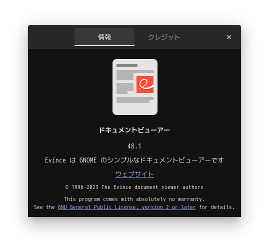 1. 概要 ドキュメントビューアとして、「Evince」を使用します。 「Evince」は、デフォルトでインストールされています。 2. 起動 「スタート」→「オフィス」→「ドキュメントビューア」