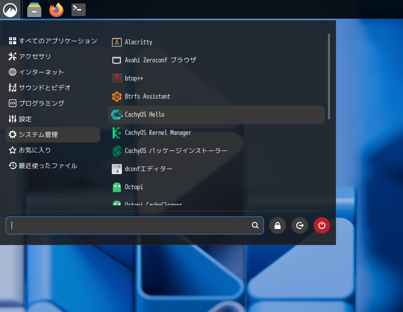 「スタート」→「システムツール」→「CachyOS Hello」