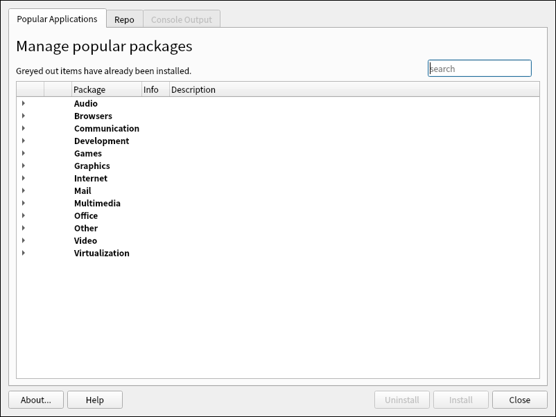 操作方法等は「Linux - 共通事項 - パッケージ管理フロントエンド」をご参照ください。