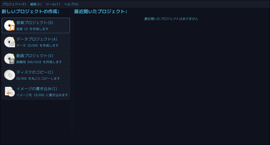 1. 概要 光ディスクライティングソフトとして、「Brasero」を使用します。 2. インストール 「Pamac」で、「brasero」を検索して、インストールします。 3. 起動 「スタート」→「マルチメディア」→「Brasero」