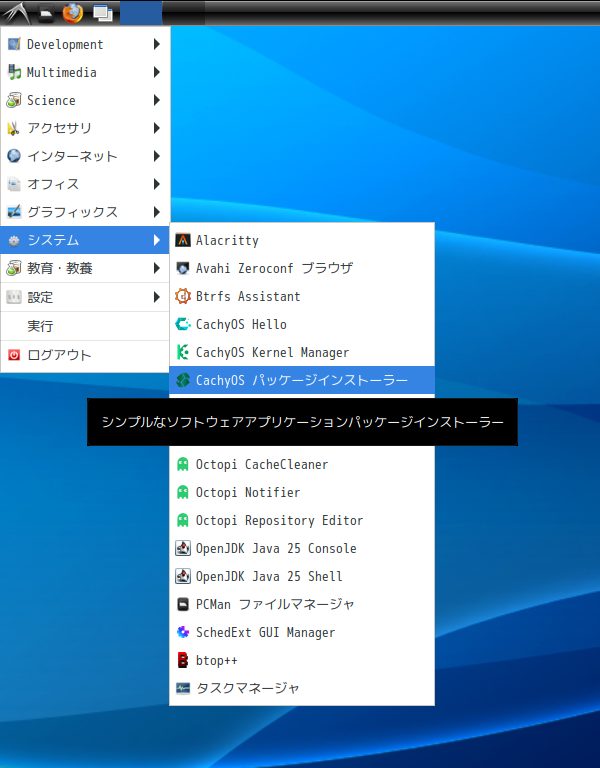 「スタート」→「システム」→「CachyOS パッケージインストーラ」