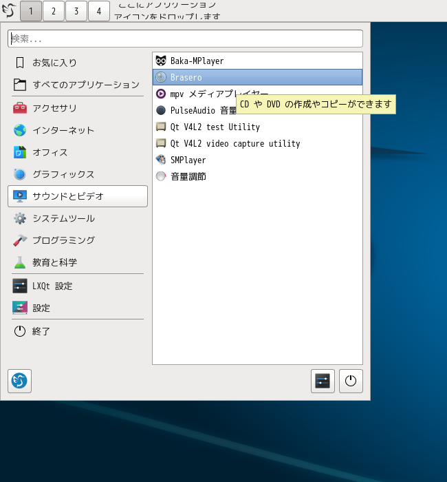 1. 概要 光ディスクライティングソフトとして、「Brasero」を使用します。 2. インストール 「Pamac」で、「brasero」を検索して、インストールします。 3. 起動 「スタート」→「サウンドとビデオ」→「Brasero」