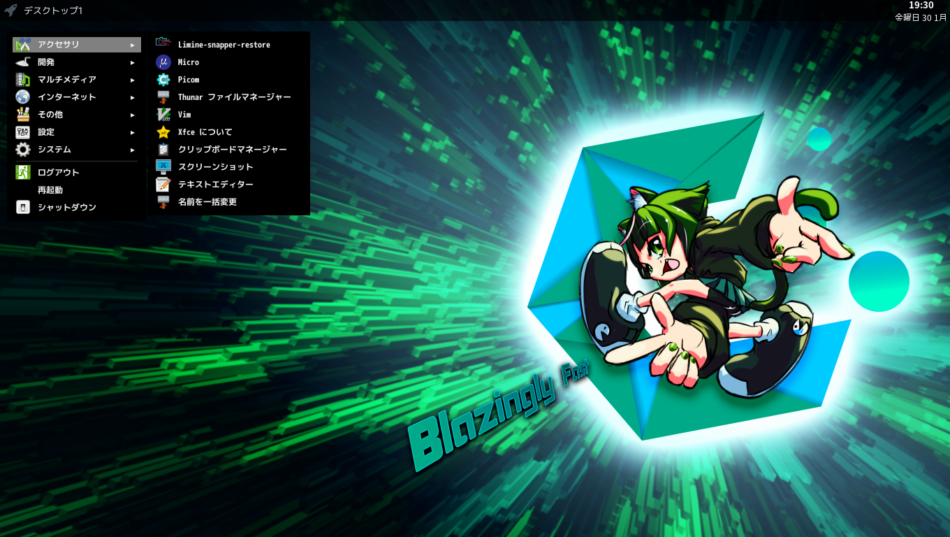 カスタマイズ後のデスクトップ・メニューです。
