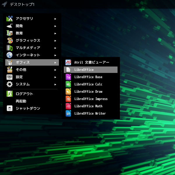1. 概要 オフィススイートとして、「LibreOffice」を使用します。 2. インストール 「Octopi」で、「libreoffice-ja」を検索して、「libreoffice-still-ja」をインストールします。 3. 起動 「スタート」→「オフィス」→「LibreOffice」