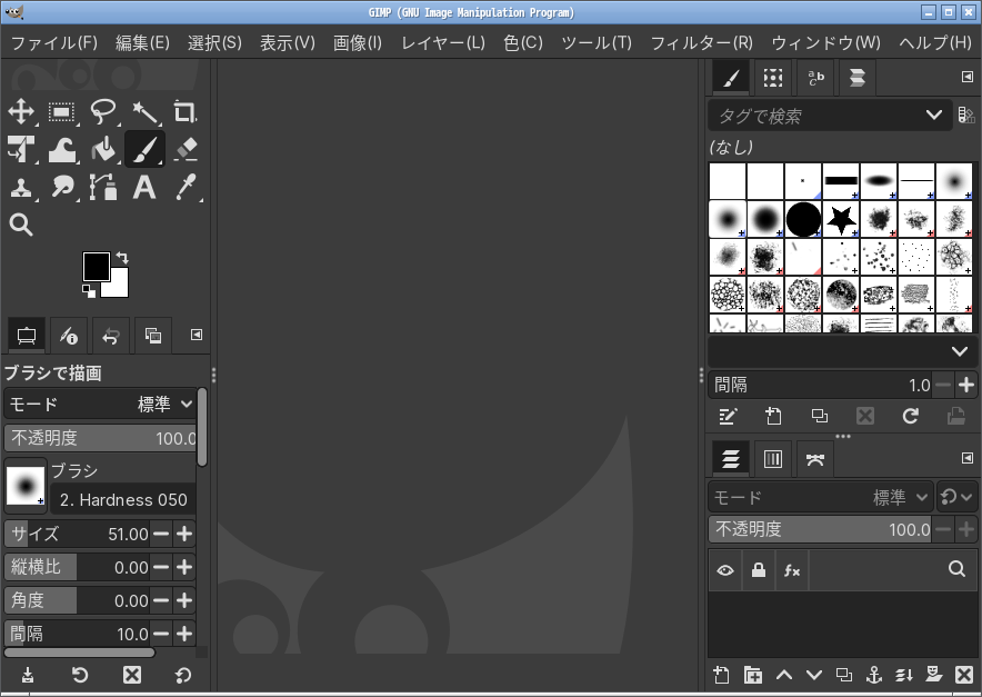「閉じる」 起動直後の状態です。 2026年2月2日の時点で、下記のバージョンでした。 操作については、「画像編集ソフト - GIMP」に掲載しています。 上記は簡単なものですので、詳細なものがほしい方は、各所に初歩の手引きから応用編までありますので、そちらを参考にしてください。 |