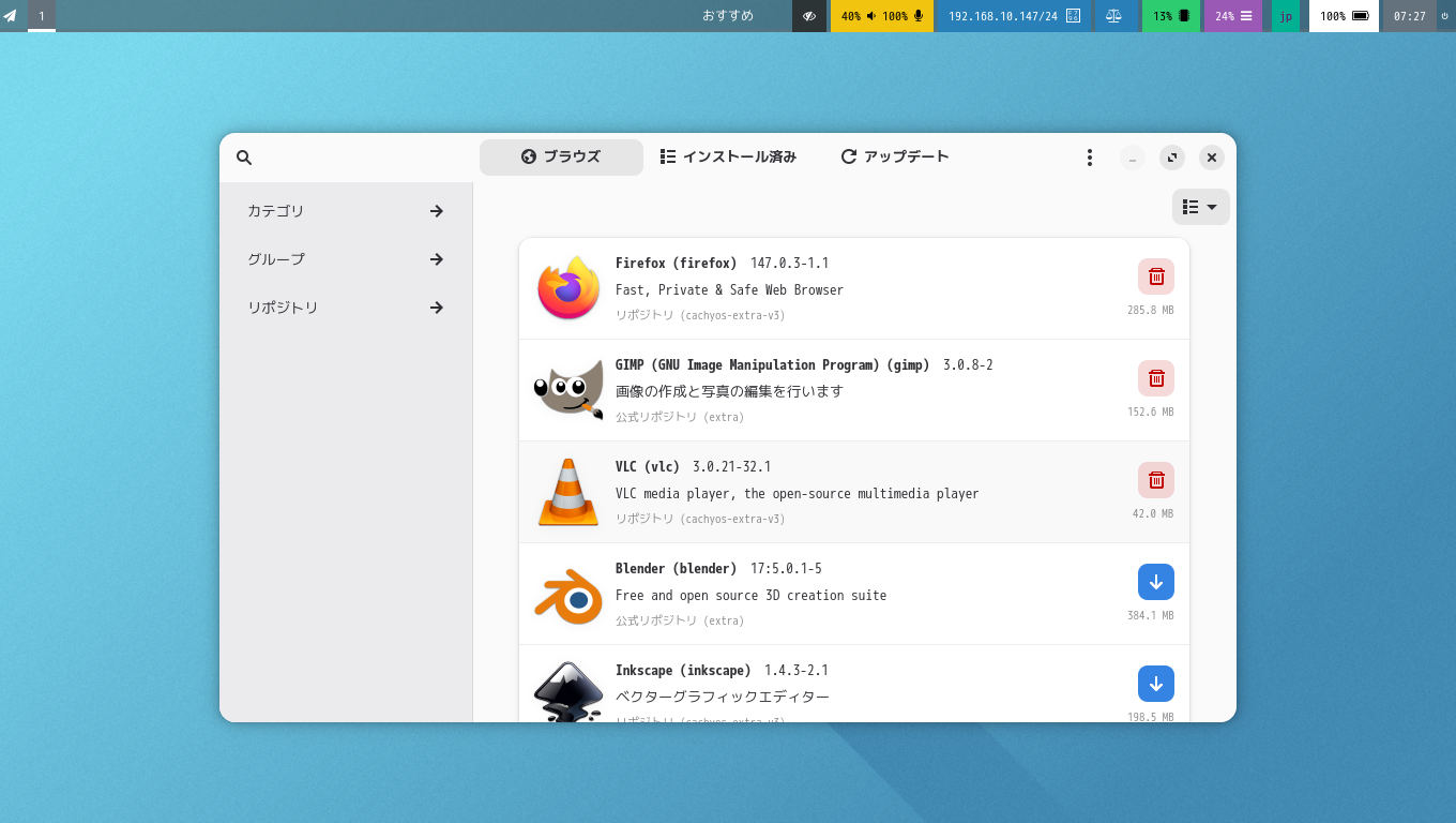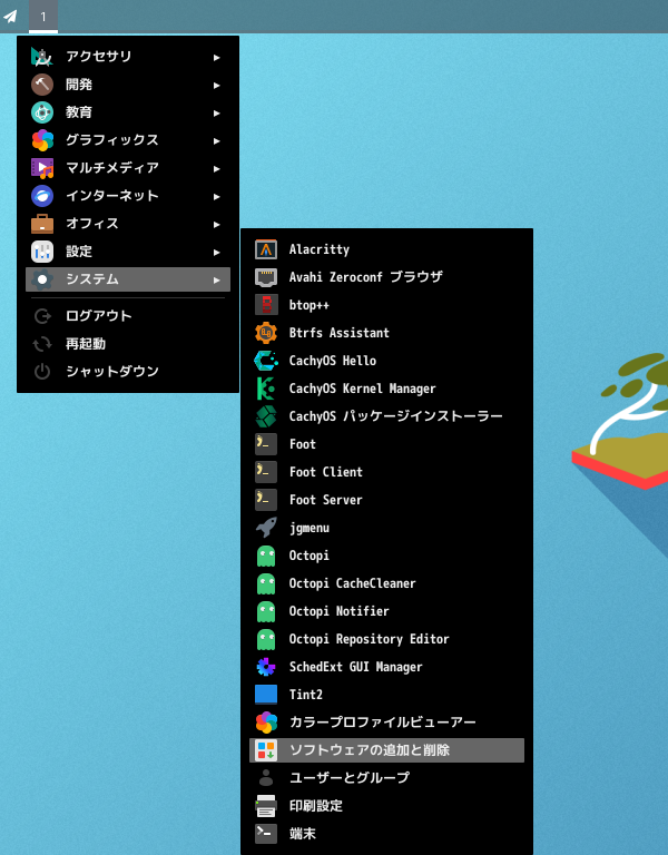 「スタート」→「システム」→「CachyOS パッケージインストーラ」