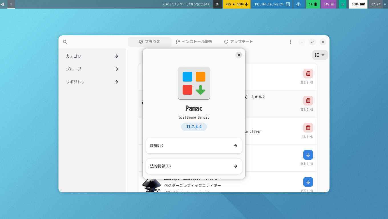 その他に、「pamac」をインストールして使用します。