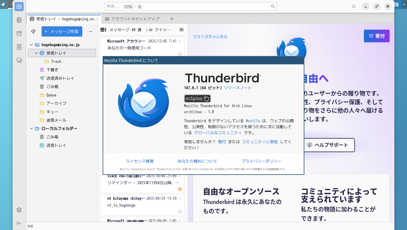 CachyOS - 260124 - sway - メールクライアント Thunderbird