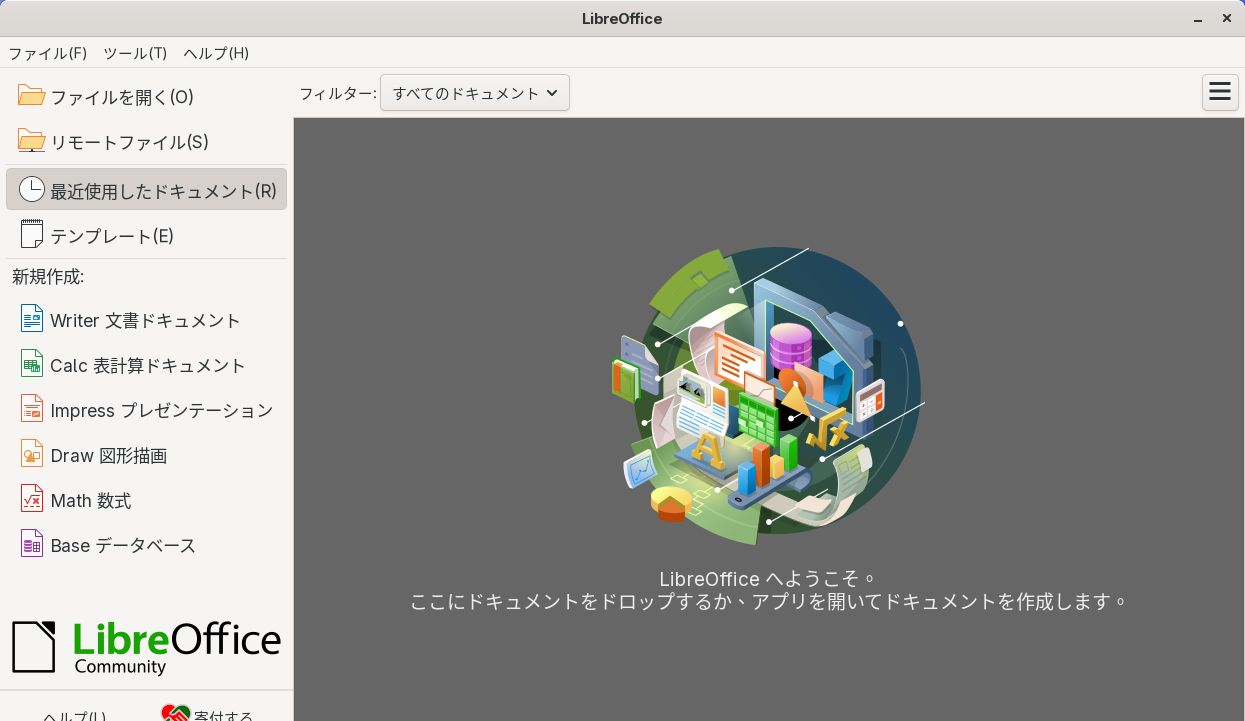 操作方法等については「オフィススィート LibreOffice」をご参照ください。