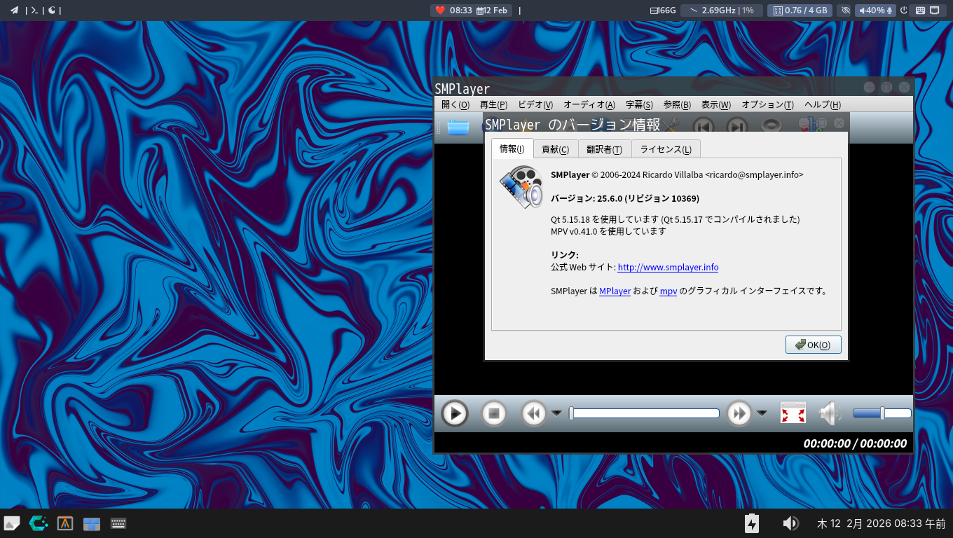 マルチメディアプレイヤーとして、「SMPlayer」を使用します。