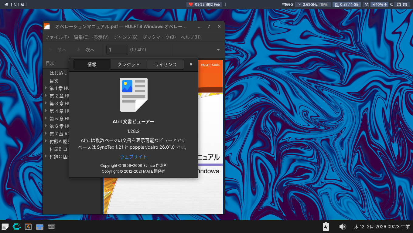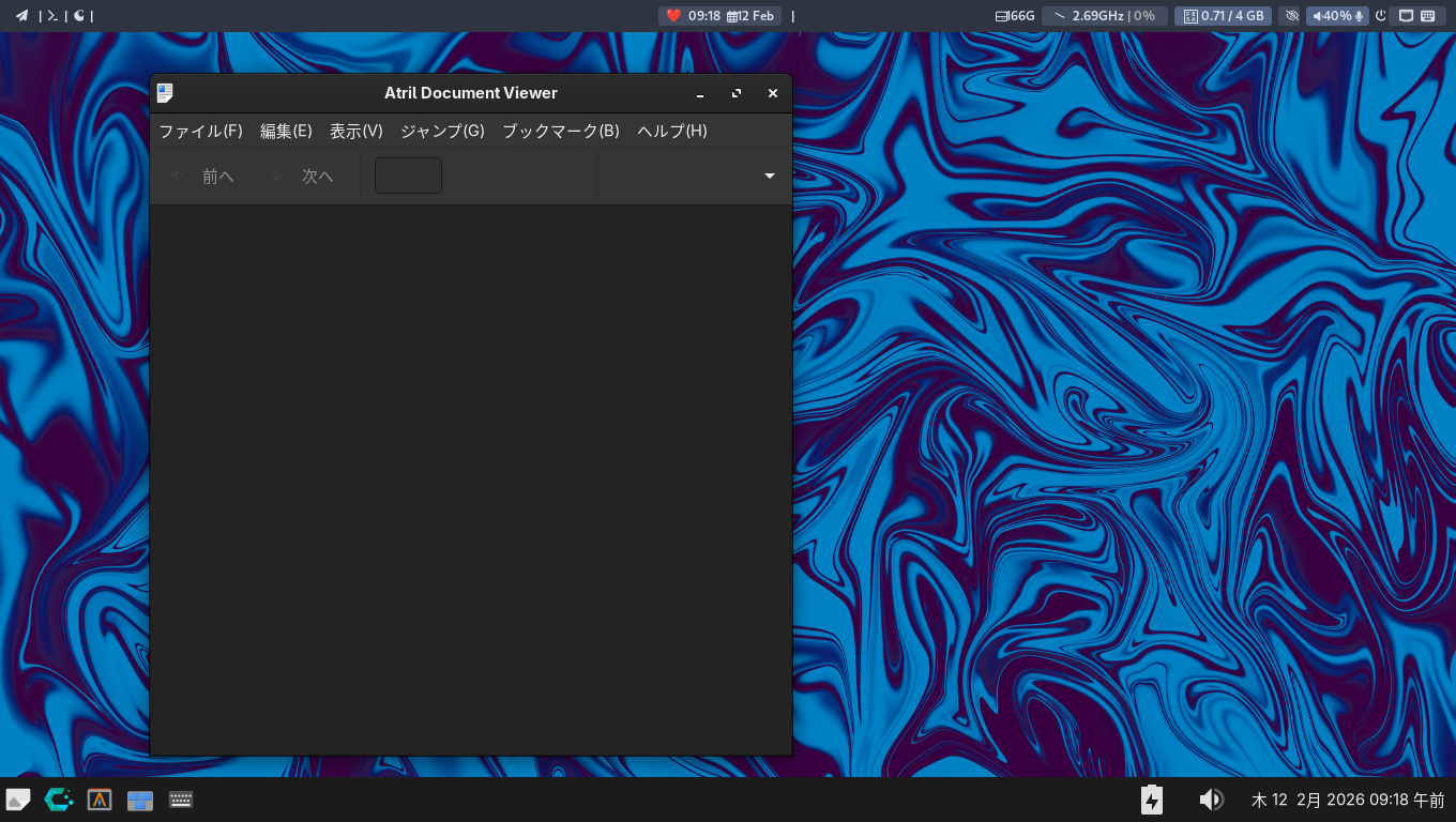 1. 概要 ドキュメントビューアとして、「Atril」を使用します。 「Atril」は、デフォルトでインストールされています。 2. インストール 「Pamac」で、「atril」を検索して、インストールします。 3. 起動 「スタート」→「オフィス」→「Atril 文書ビューア」