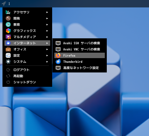 1. 概要 ブラウザとして、「Firefox」を使用します。 「Firefox」は、デフォルトでインストールされています。 2. 起動 「スタート」→「インターネット」→「Firefox」