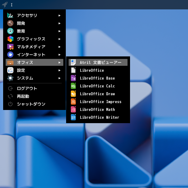 ドキュメントビューアとして、「Atril」を使用します。