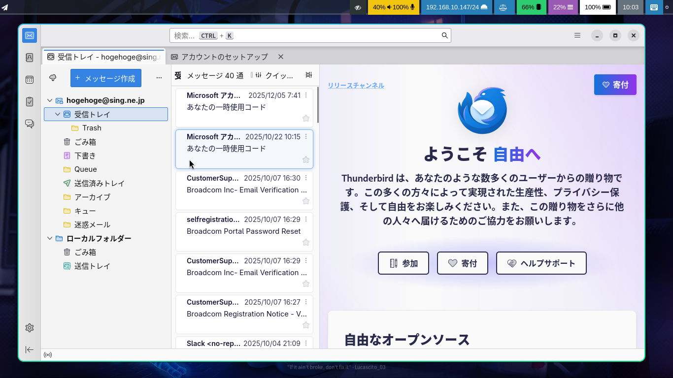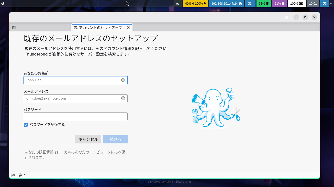 CachyOS - 260124 - hyprland - メールクライアント Thunderbird