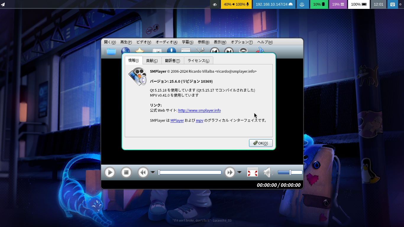 マルチメディアプレイヤーとして、「SMPlayer」を使用します。