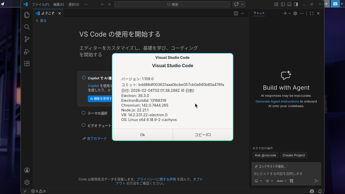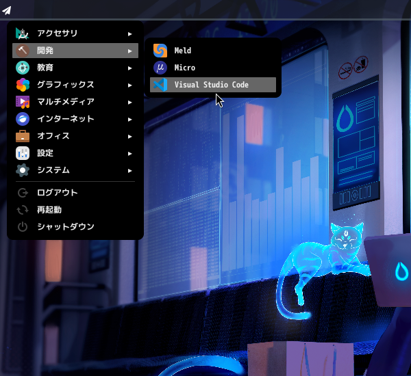 1. 概要 開発環境として、「Visual Studio Code」を使用します。 2. インストール ログインユーザで。 yay -S visual-studio-code-bin 複数回、Enter の入力が必要です。 3. 起動 「スタート」→「開発」→「Code OSS」
