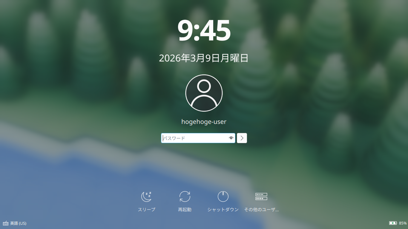 ログイン画面が表示されれば、インストールは、完了です。 「VirtualBox」上にインストールしている場合、ログイン画面が「2560x1000」という巨大なものになります。 ホスト側から、「Guest Additions」をインストールしたらなおるかと思いましたが、逆に、ホストのものをインストールすると「Guest Additions」が動かなくなります。 |