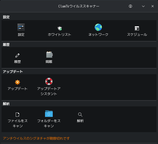 1. 概要 「ClamTk」は、「GUI」で操作するアンチウィルスソフトです。 2. インストール 「Octopi」で、「clamtk」を検索してインストールします。 3. 起動 「スタート」→「ユーティリティ」→「ClamTk」