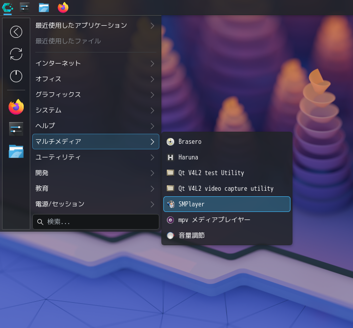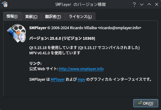1. 概要 マルチメディアプレイヤーとして、「SMPlayer」を使用します。 2. インストール 「Octopi」で、「smplayer」を検索して、インストールします。 3. 起動 「スタート」→「マルチメディア」→「SMPlayer」