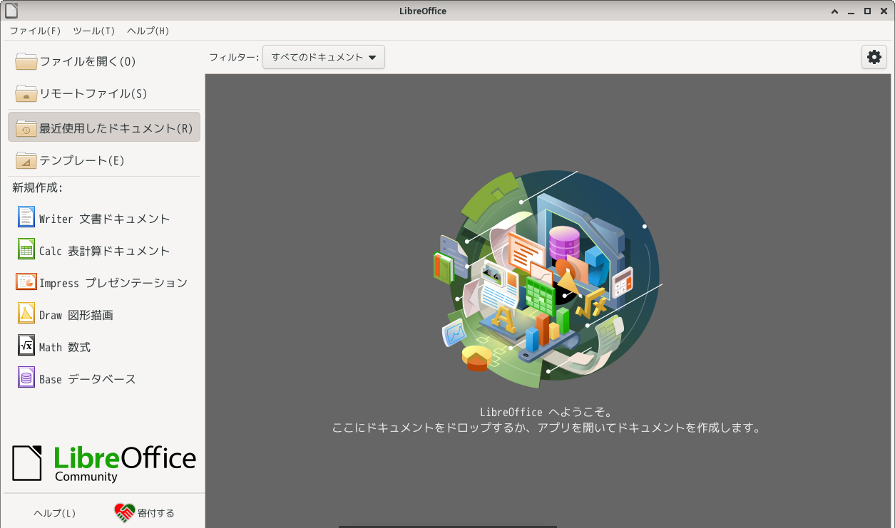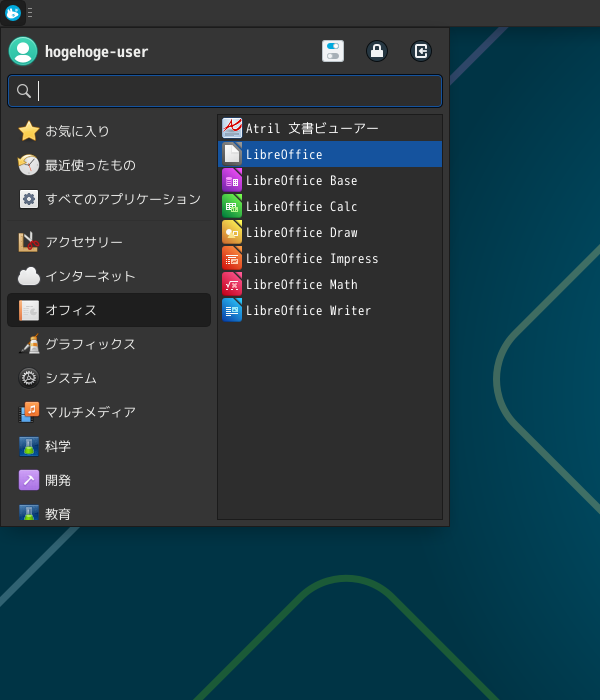 オフィススイートとして、「LibreOffice」を使用します。
