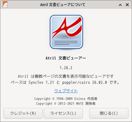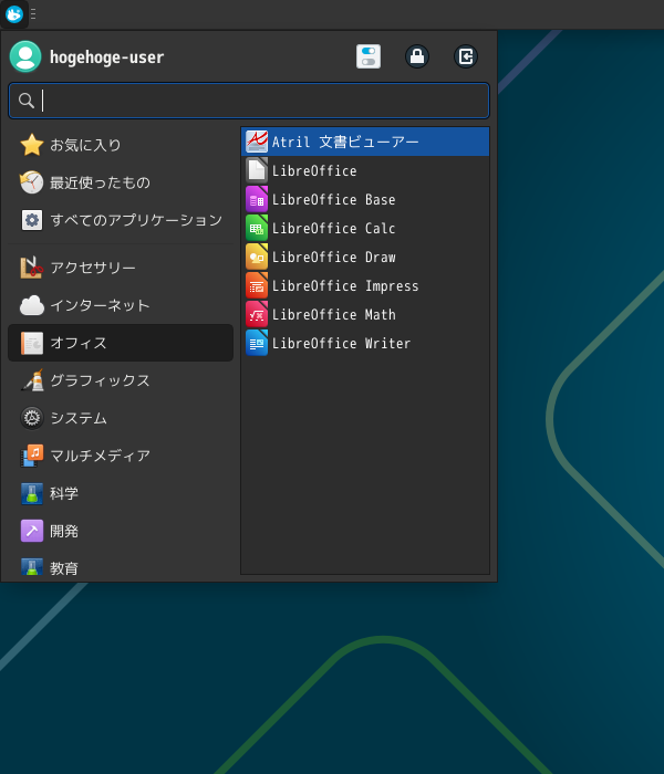 1. 概要 ドキュメントビューアとして、「Atril」を使用します。 2. インストール 「Pamac」で、「atril」を検索して、インストールします。 3. 起動 「スタート」→「オフィス」→「Atril 文書ビューア」
