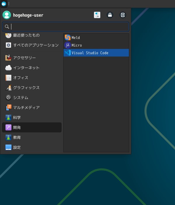 「スタート」→「開発」→「Code OSS」
