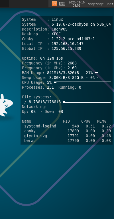 CachyOS - 260308 - XFCE - タスクマネージャー Conky