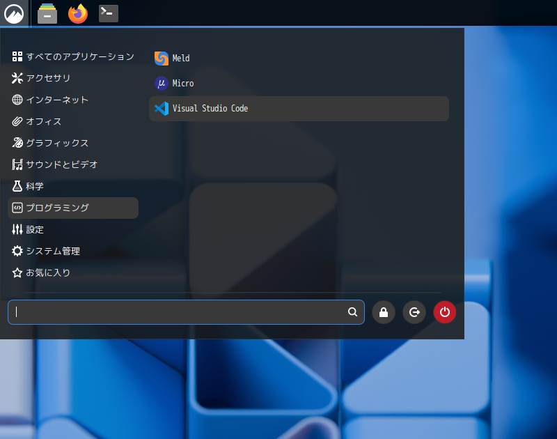 「スタート」→「プログラミング」→「Visual Studio Code」