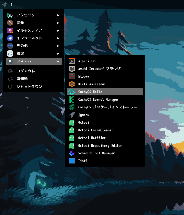「スタート」→「システム」→「CachyOS Hello」