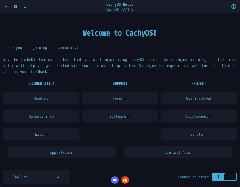 ログインするたびに「CachyOS Hello」というダイアログが表示されていたのですが・・・途中から表示されなくなりました。