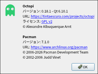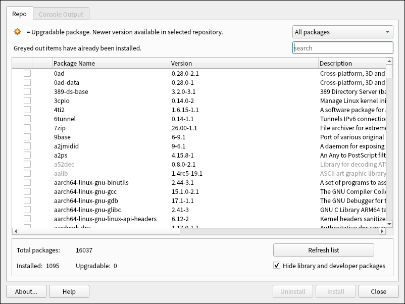 起動直後の状態です。 2026年3月11日の時点で、下記のバージョンでした。 操作方法等は「Linux - 共通事項 - パッケージ管理フロントエンド」をご参照ください。 |