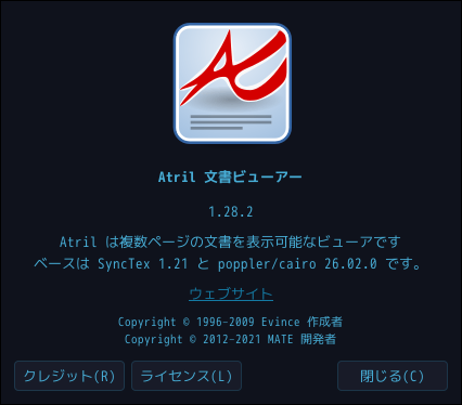 1. 概要 ドキュメントビューアとして、「Atril」を使用します。 2. インストール 「Octopi」で、「atril」を検索して、インストールします。 3. 起動 「スタート」→「オフィス」→「Atril 文書ビューア」