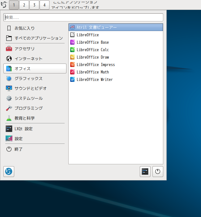 1. 概要 ドキュメントビューアとして、「Atril」を使用します。 「Atril」は、デフォルトでインストールされています。 2. インストール 「Octopi」で、「atril」を検索して、インストールします。 3. 起動 「スタート」→「オフィス」→「Atril 文書ビューア」