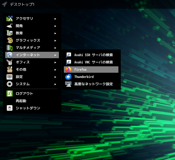 ブラウザとして、「Firefox」を使用します。  「Firefox」は、デフォルトでインストールされています。