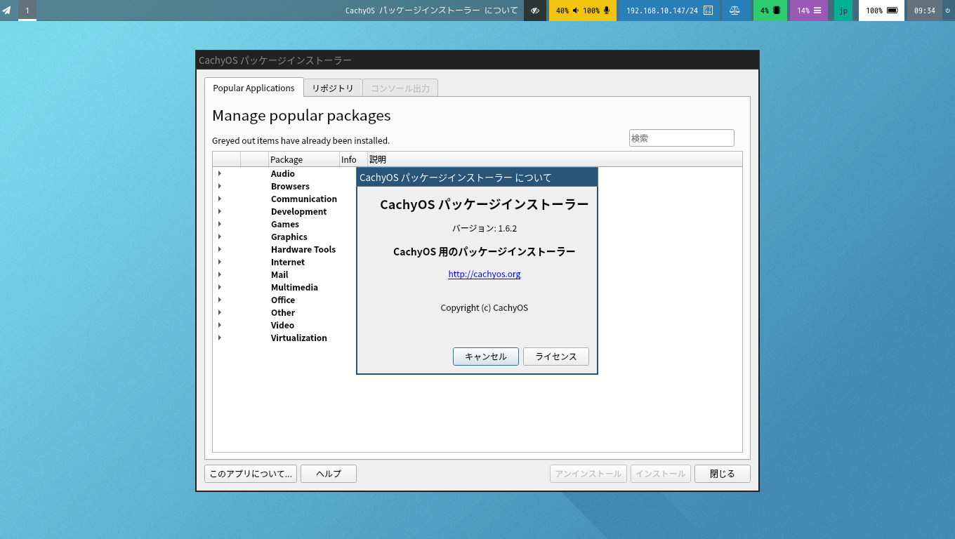 起動直後の状態です。 2026年3月19日の時点で、下記のバージョンでした。 操作方法等は「Linux - 共通事項 - パッケージ管理フロントエンド」をご参照ください。 |