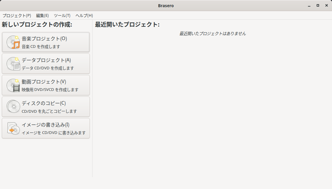 1. 概要 光ディスクライティングソフトとして、「Brasero」を使用します。 2. インストール 「Octopi」で、「brasero」を検索して、インストールします。 3. 起動 「スタート」→「Video」→「Brasero」