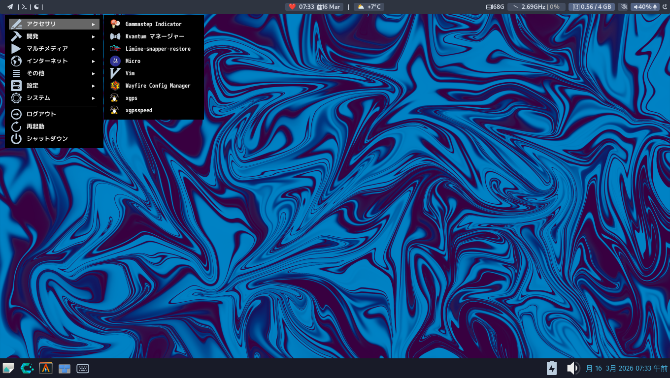 「WayFire」の共通的な操作やカスタマイズ方法については、「Wayfire - 共通事項」をご参照ください。