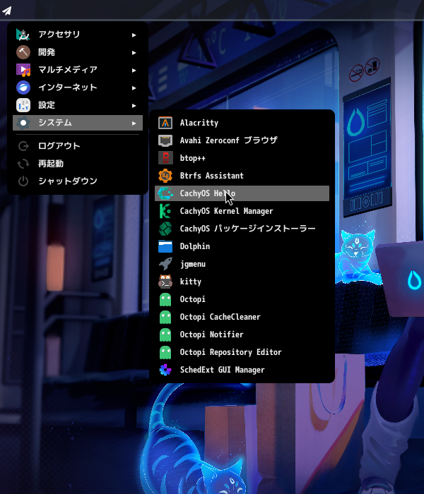 「スタート」→「システム」→「CachyOS Hello」