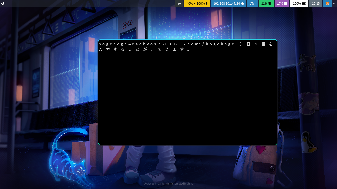 ログインしなおして、日本語が入力できることを確認しました。