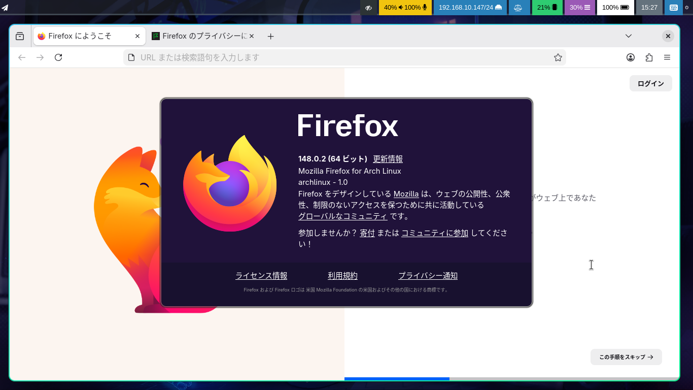 1. 概要 ブラウザとして、「Firefox」を使用します。 「Firefox」は、デフォルトでインストールされています。 2. 起動 「スタート」→「インターネット」→「Firefox」