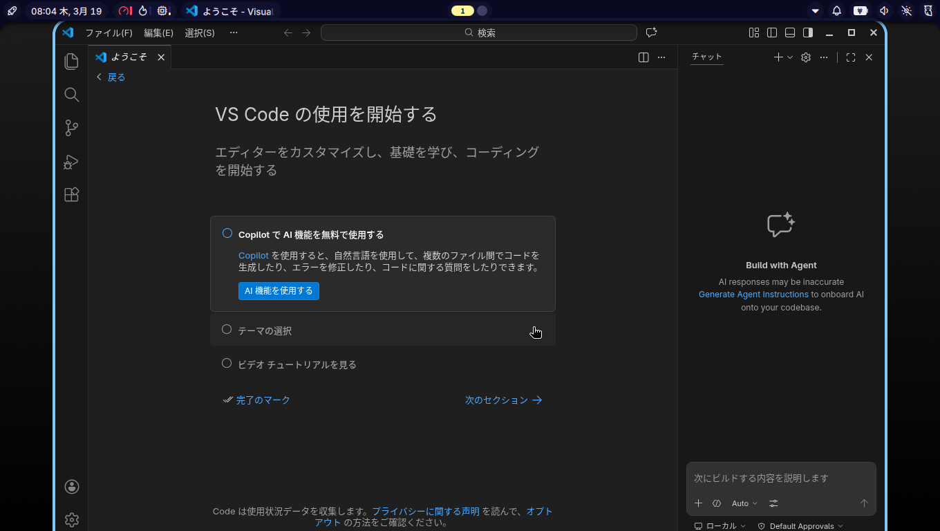 日本語化後、再起動直後の状態です。