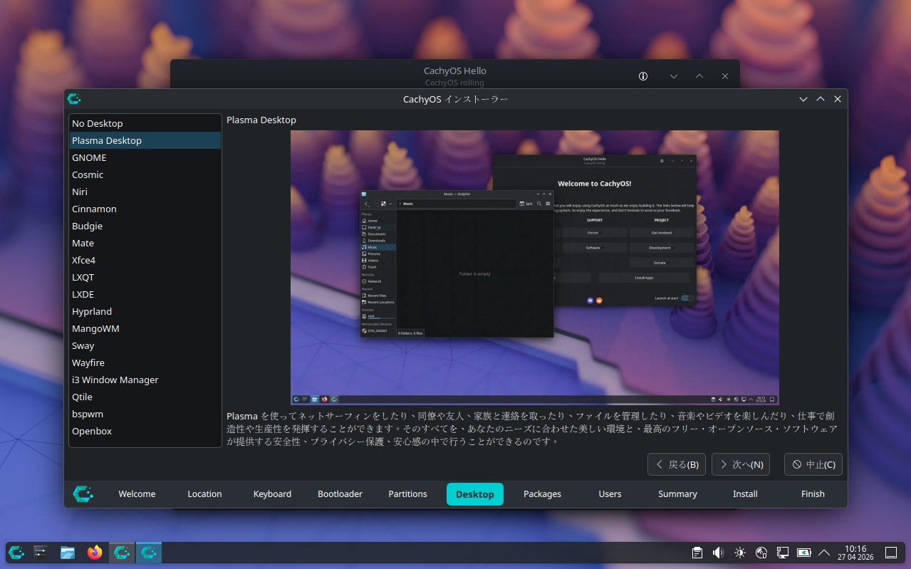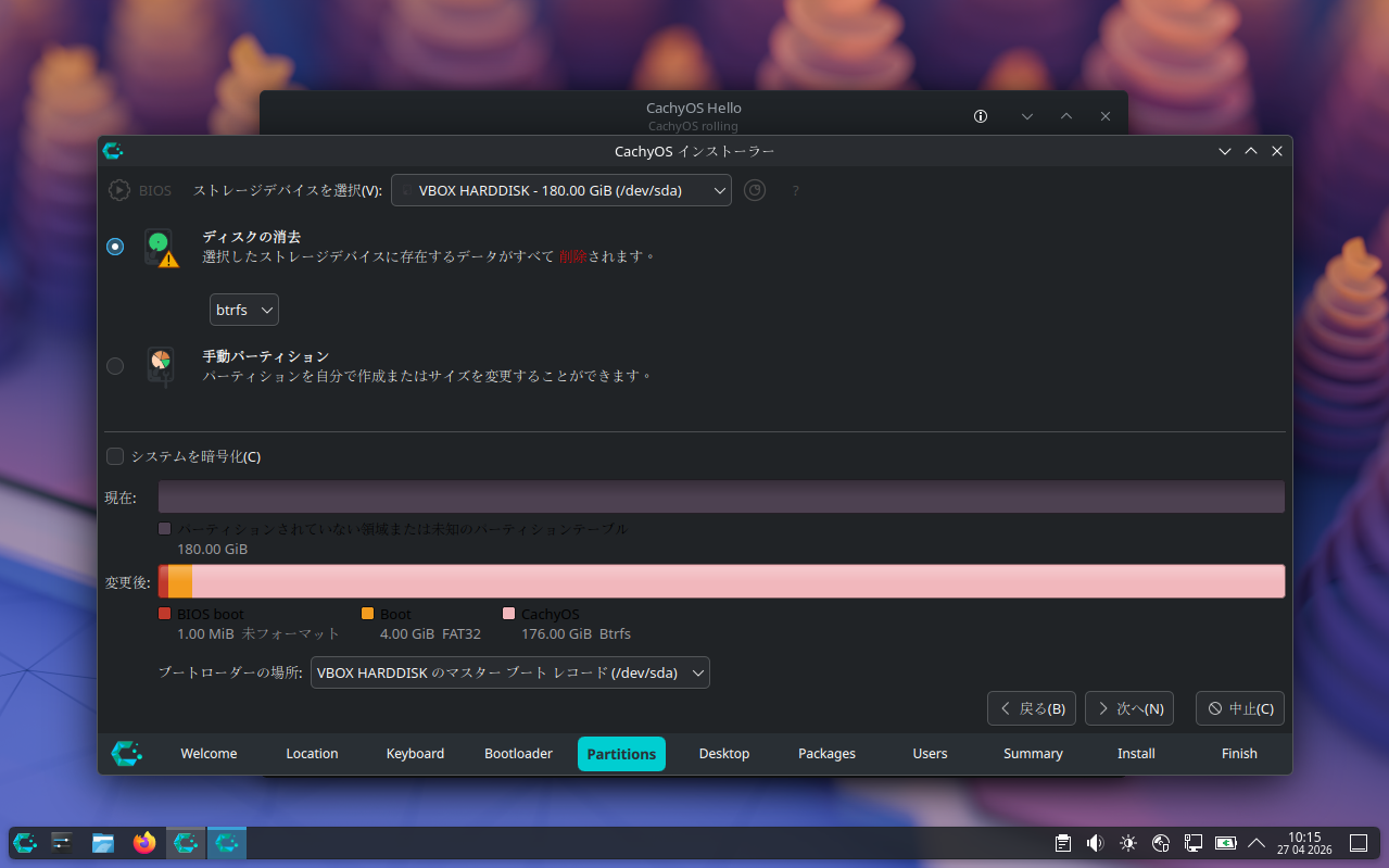 「CachyOS」は、ドイツ発祥らしいので、仕方ないですね。