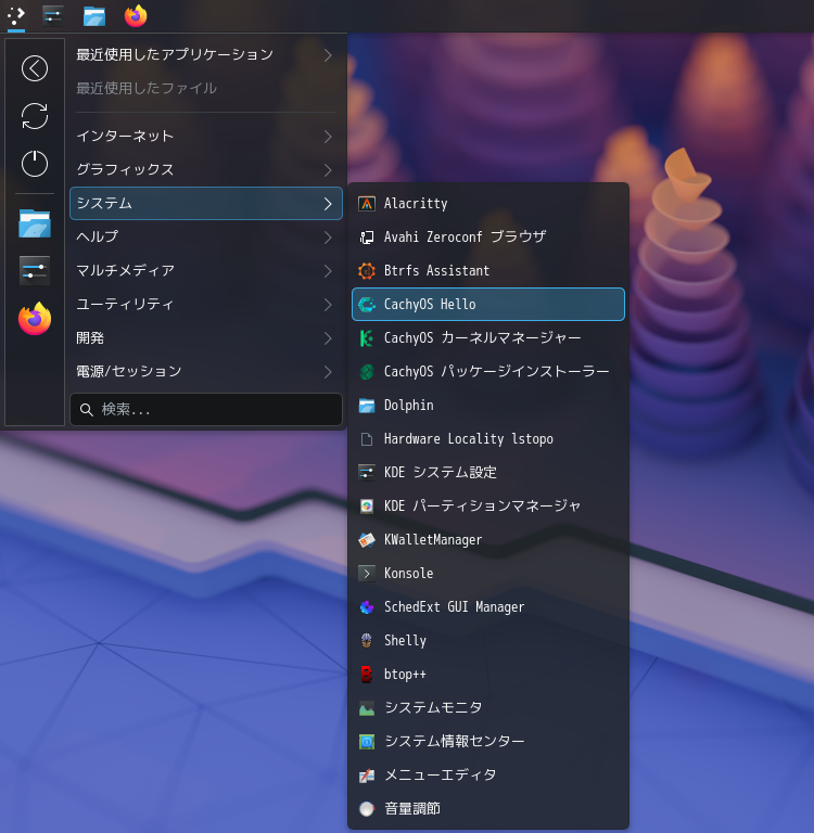 「スタート」→「システム」→「CachyOS Hello」