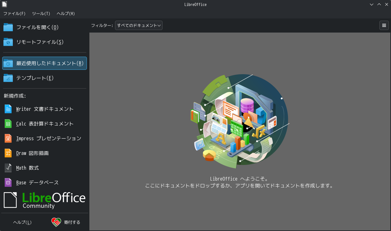 操作方法等については「オフィススィート LibreOffice」をご参照ください。