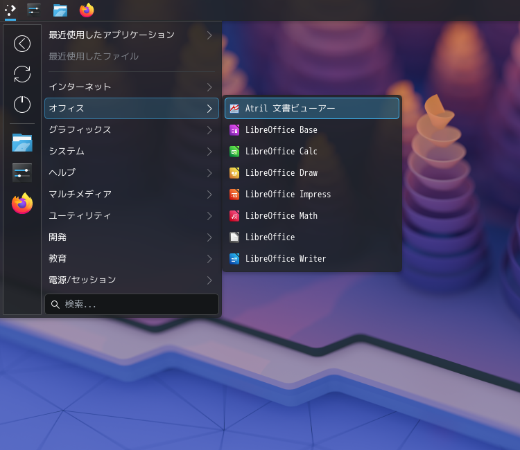 ドキュメントビューアとして、「Atril」を使用します。