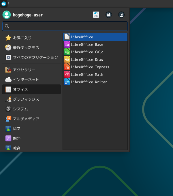 1. 概要 オフィススイートとして、「LibreOffice」を使用します。 2. インストール 「CachyOS パッケージインストーラ」で、「libreoffice-ja」を検索して、「libreoffice-still-ja」をインストールします。 3. 起動 「スタート」→「オフィス」→「LibreOffice」