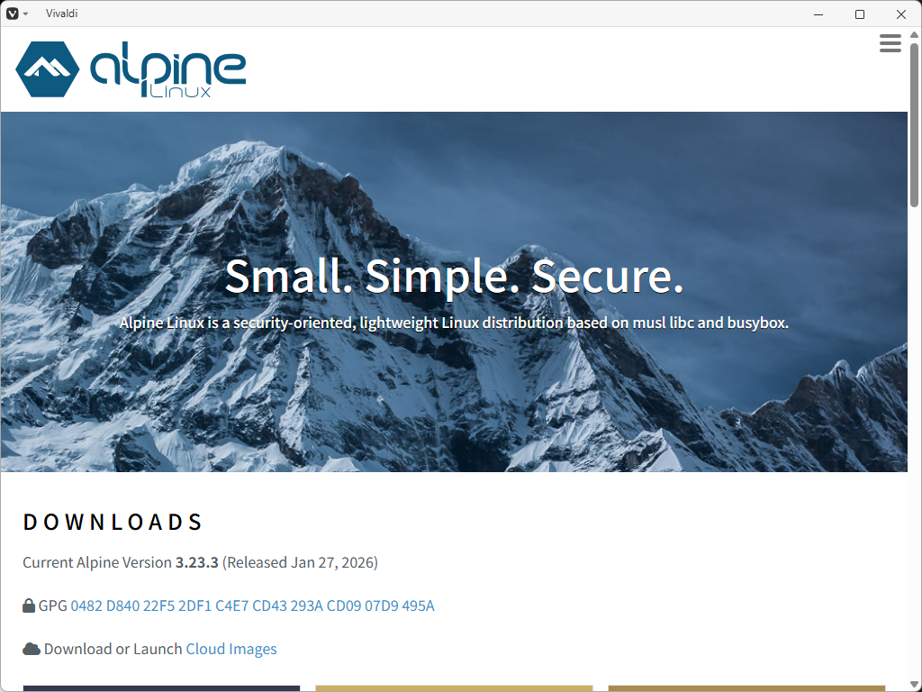 「downloads | Alpine Linux」