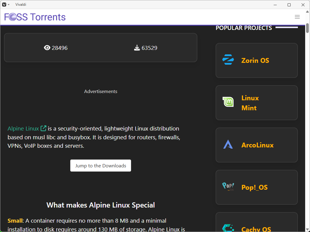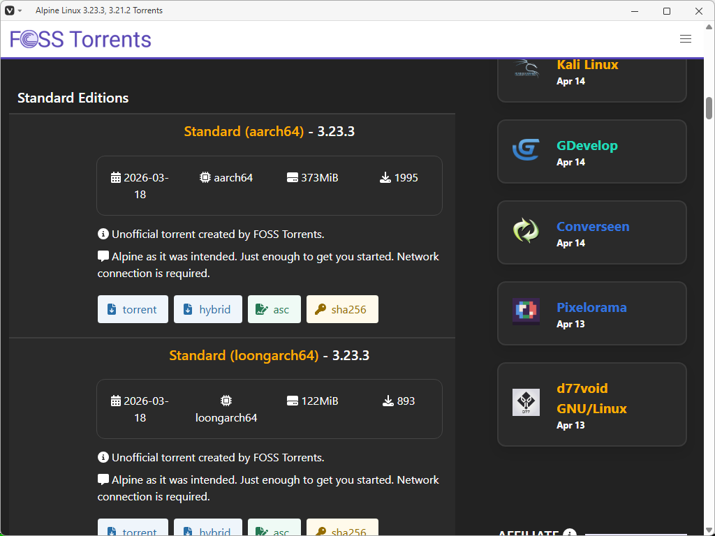 「Alpine Linux Torrents」