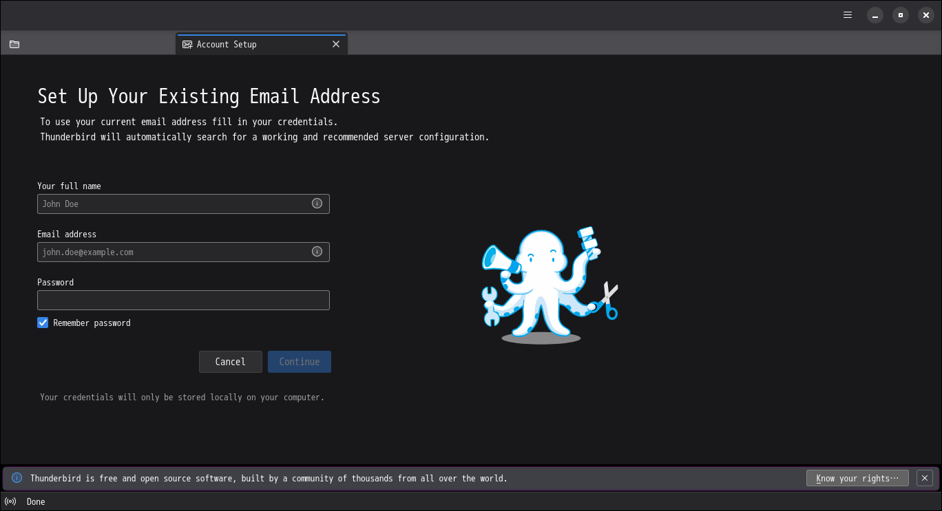 Alpine Linux - 3.23.3 - XFCE - メールクライアント Thunderbird