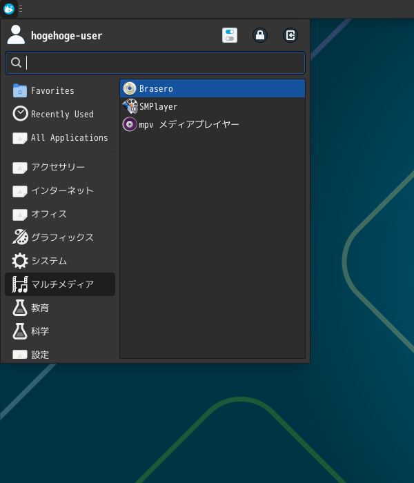 光ディスクライティングソフトとして、「Brasero」を使用します。